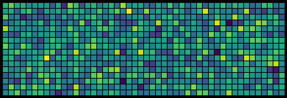 cmesh = ax.pcolormesh(residual_stream[layer], edgecolors='white', cmap='viridis', vmin=-3, vmax=3)